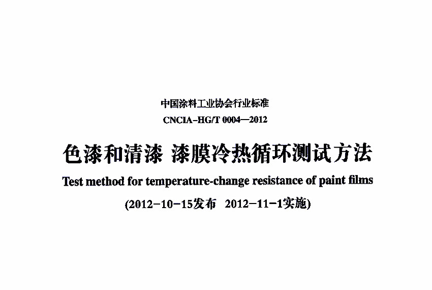 色漆和清漆漆膜冷熱循環測試方法標準CNCIA-HG/T 0004-2012
