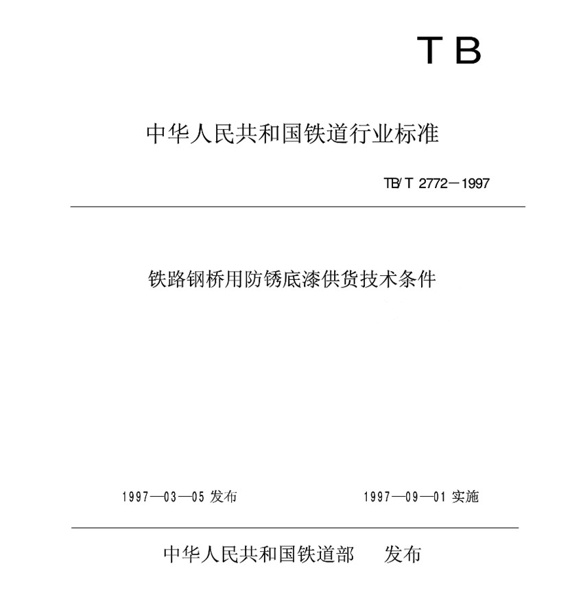 TB/T 2772-1997鐵路鋼橋用防銹底漆供貨技術條件標準