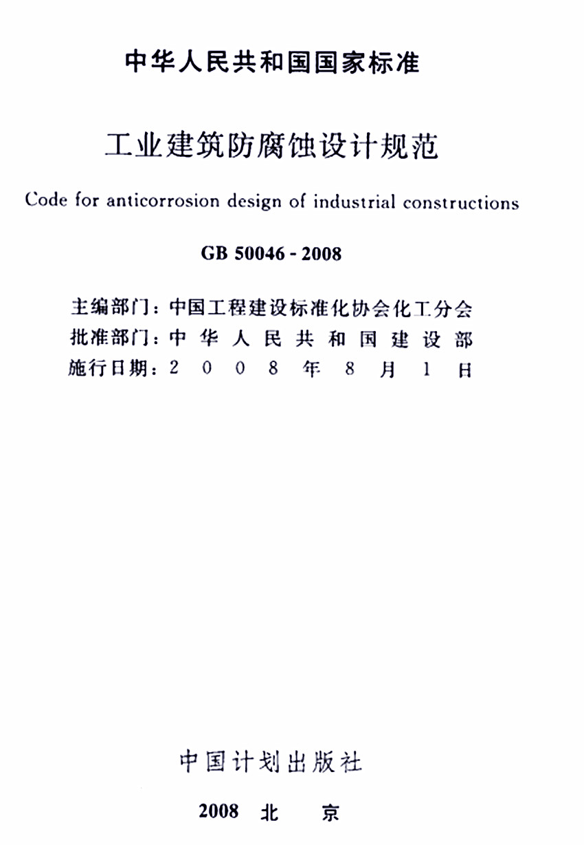 工業建筑防腐蝕設計規范防腐涂料選擇規定標準GB 50046-2008