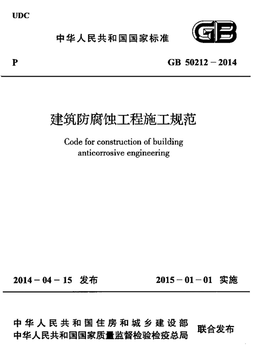 GB 50212-2014建筑防腐工程施工液體防腐涂料規范標準