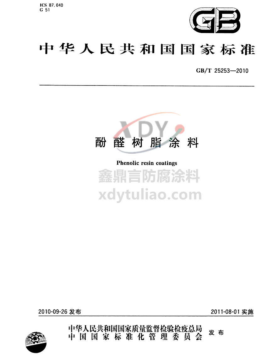酚醛樹脂涂料國家標準GB/T 25253-2010