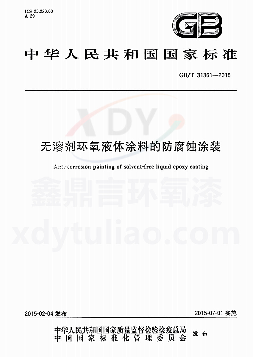 GB/T 31361-2015無溶劑環(huán)氧液體涂料的防腐蝕涂裝標(biāo)準(zhǔn)