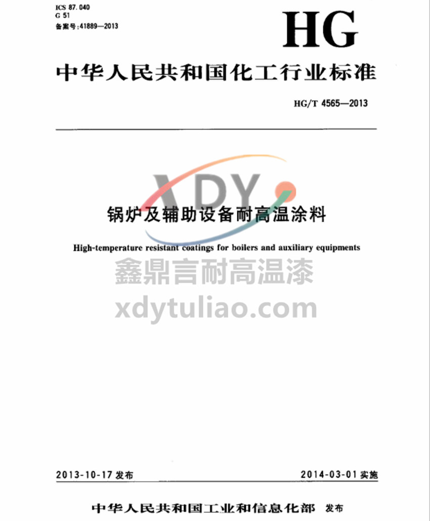 鍋爐及輔助設(shè)備耐高溫涂料標準HG/T4565-2013