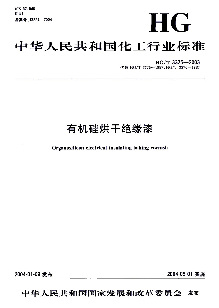 HG/T 3375-2003有機硅烘干絕緣漆標準 ICS87.040 G51 備案號:13224-2004 HG 中華人民共和國化工行業(yè)標準 HG/T 3375-2003代替 HG/T 3375-1987,HG/T 3376-1987 有機硅烘干絕緣漆Organosilicon electrical insulating baking varnish 2004-01-09發(fā)布,2004-